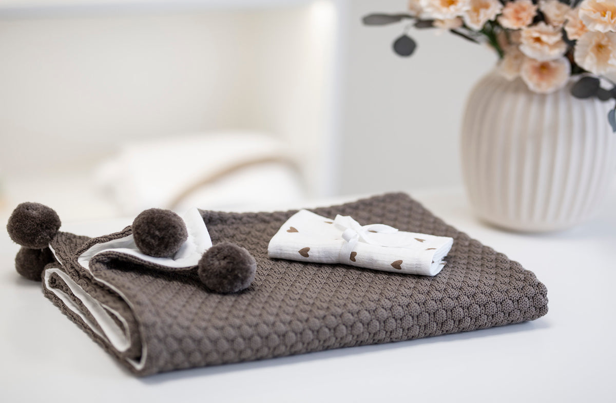 Blankets can only be ironed with steam (without touching the knit) and must be shaped correctly.