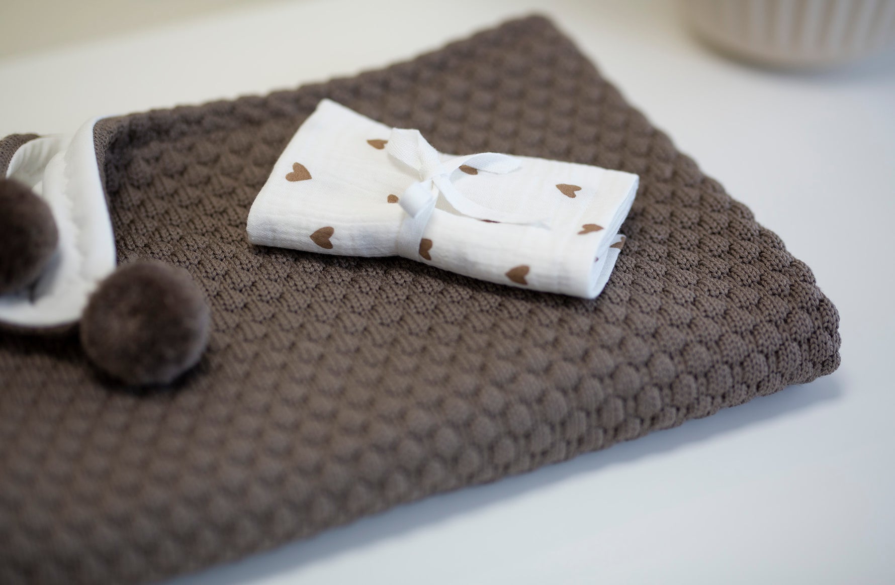Double-sided design. One side of the blanket is made of 100% merino wool yarn, which ensures natural thermal insulation and a pleasant touch. The other side is made of soft and gentle, breathable cotton terry knitwear, which allows the skin to breathe and provides additional comfort. Temperature regulation. Merino wool has excellent thermal insulation properties - when it is cold, it warms, and when it is hot, it effectively evaporates moisture (sweat), protecting the baby from overheating. Antibacterial properties - merino wool naturally has antibacterial properties, so the blanket will remain clean and hygienic for longer.