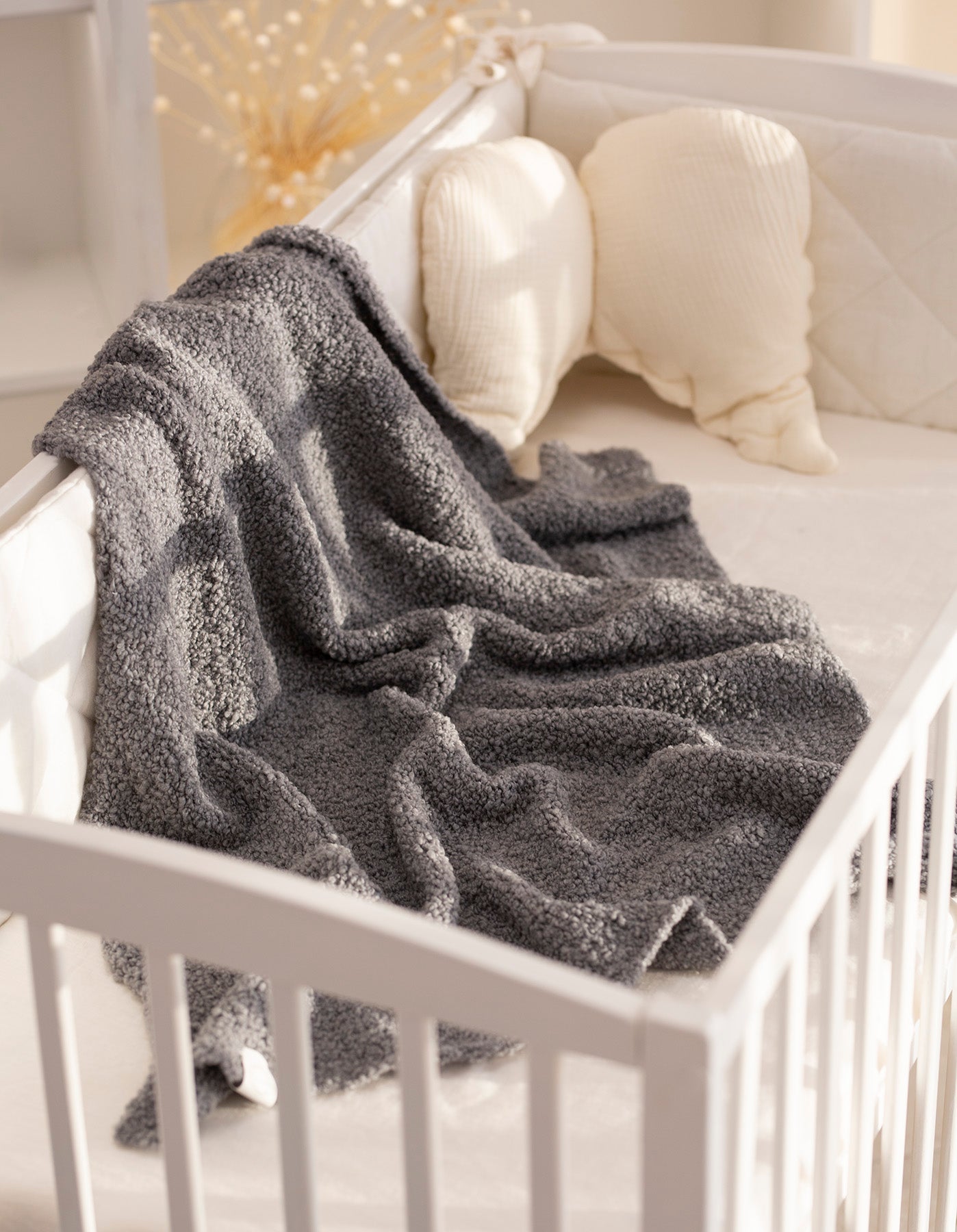 Šis išskirtinis merino vilnos pledukas sukurtas tam, kad mažylis visada jaustųsi jaukiai, saugiai ir šiltai. Rankų darbo, iš merino vilnos siūlų, pledukas pasižymi ne tik nepaprastu švelnumu, bet ir termoreguliacinėmis savybėmis – jis šildo, bet neperkaitina. Minkštas, purios tekstūros paviršius malonus liesti ir idealiai tinka jautriai kūdikio odelei.