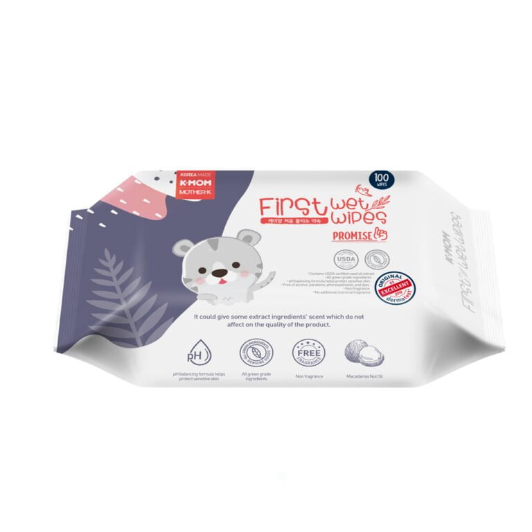 K-MOM Organiškos drėgnos servetėlės "Pilkas meškiukas", 100vnt.