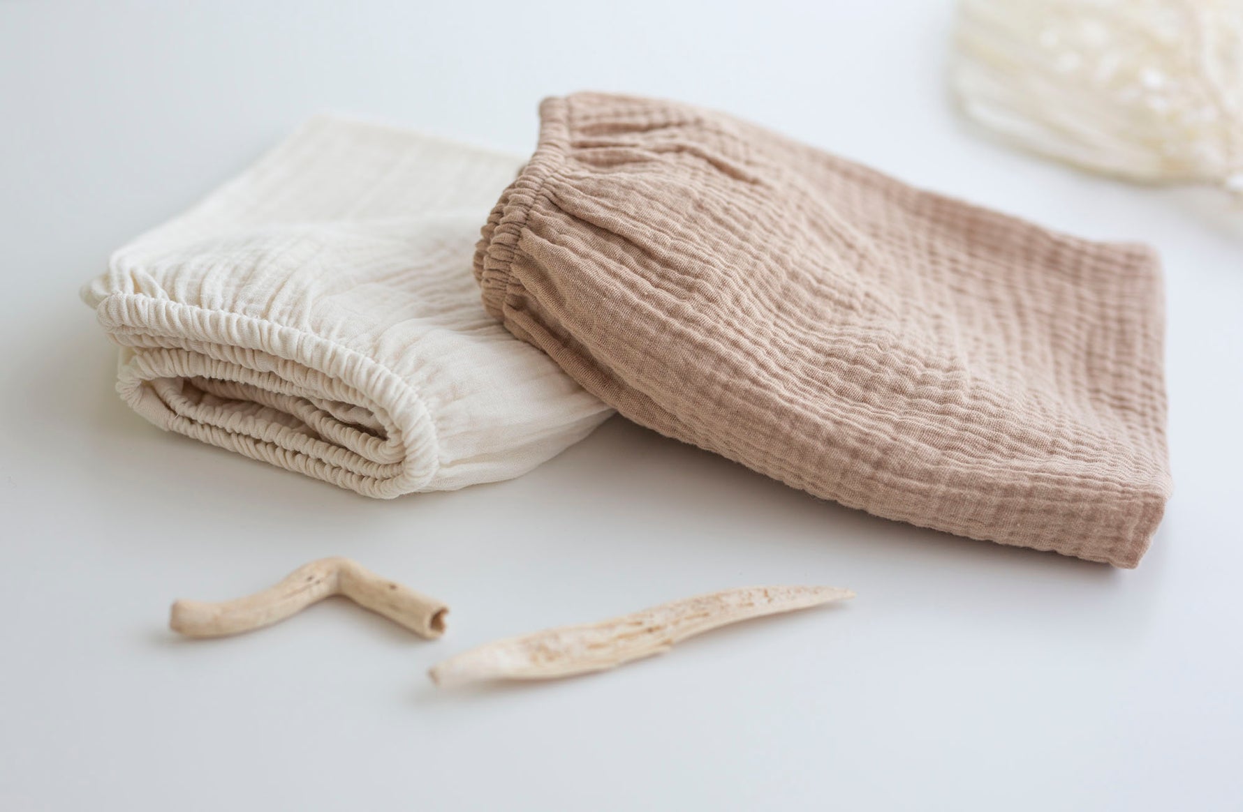 Muslino paklodė su guma "Šviesiai ruda. Vanilinė"