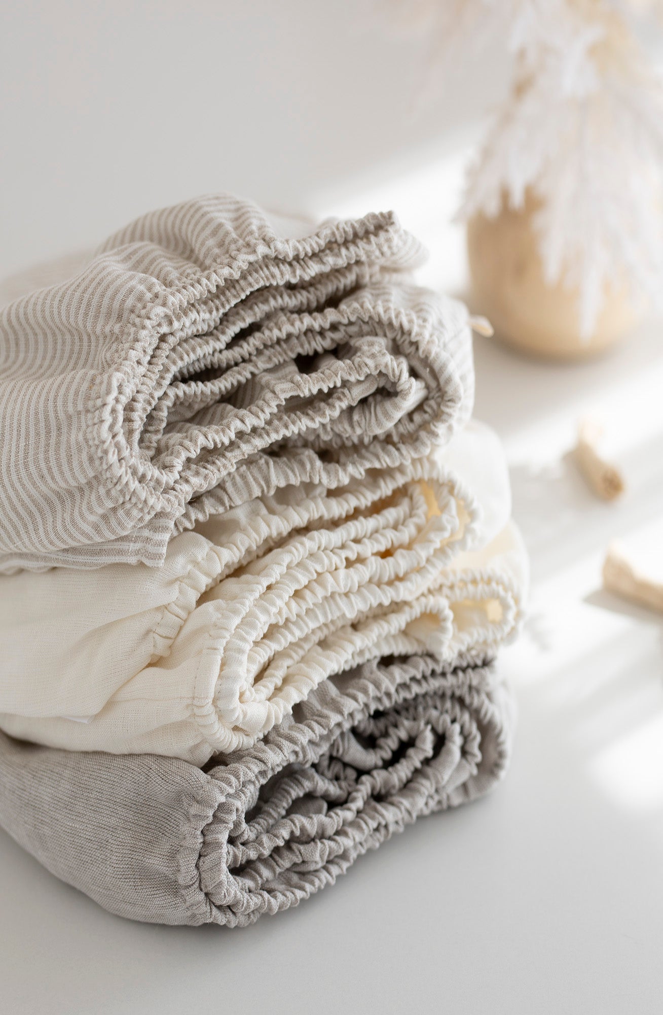 Medvilnės drobelės paklodė su guma kūdikiams ir vaikams "Vanilinė"