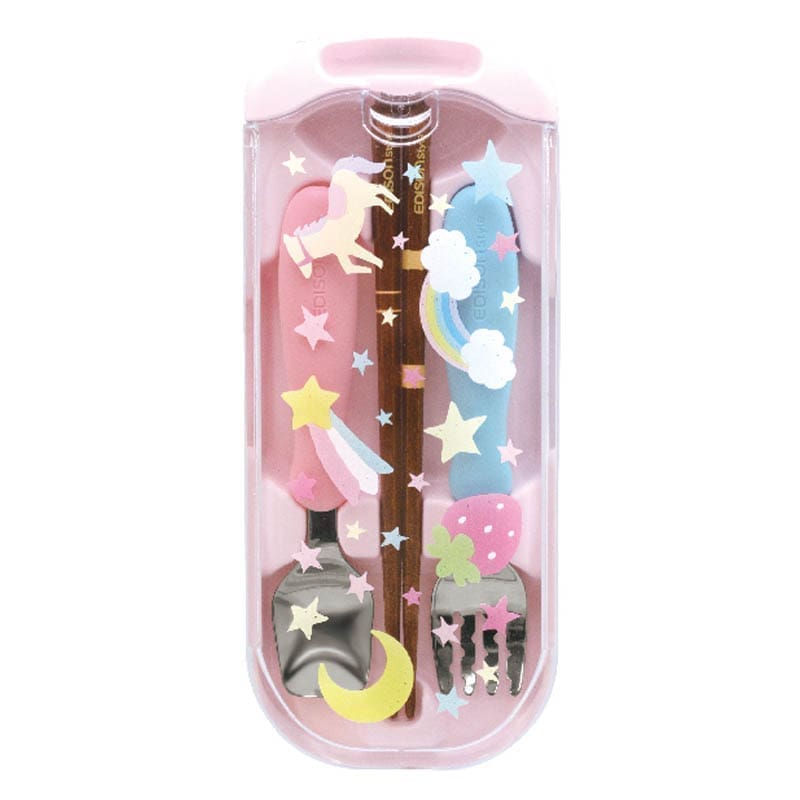 Su šiuo vaikiškų įrankių rinkiniu mažylis išmoks naudotis ne tik šakute ir šaukšteliu, bet ir valgomosiomis lazdelėmis!