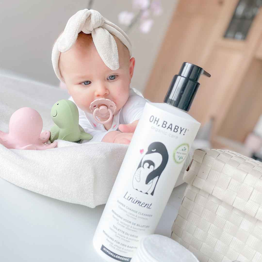 Su turtingu terminio vandens ir migdolų aliejaus mišiniu. “Oh, Baby!” linimentas valo, ramina ir stiprina apsauginį kūdikio užpakaliuko odos sluoksnį. Šiame ekologiškame ir veganiškame linimente taip pat yra prebiotikų ir probiotikų, kurie saugo odą nuo kenksmingų bakterijų ir paraudimo. Be to, šioje formulėje taip pat yra vitaminų A, B, D ir E. Ir, žinoma, visi mūsų produktai yra dermatologiškai patikrinti ir hipoalergiški!