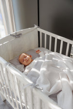Kūdikio lovytės kraštų apsaugėlės "Baltos su šviesiai pilkais raišteliais"