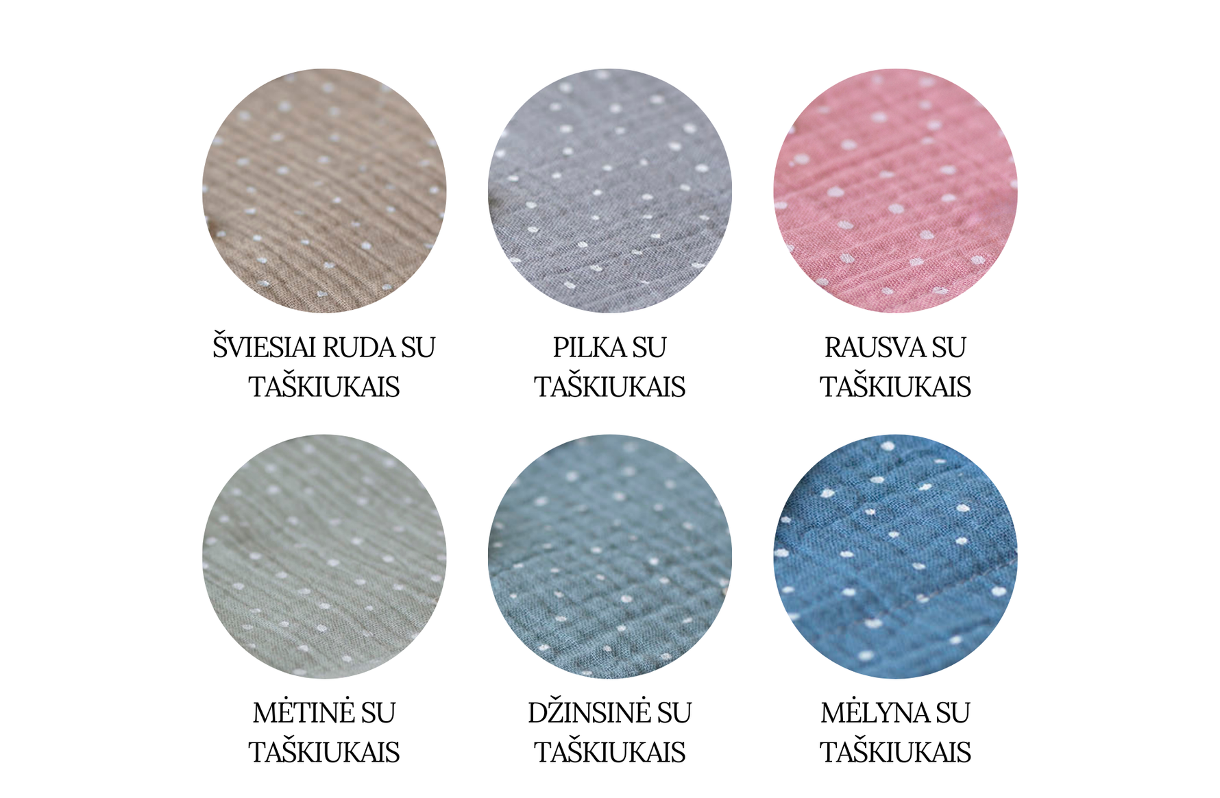 • Švelnus ir minkštas audinys. Muslinas yra itin švelnus, todėl puikiai tinka jautriai kūdikio odai, užtikrinant komfortą ir švelnumą naudojant kasdien.