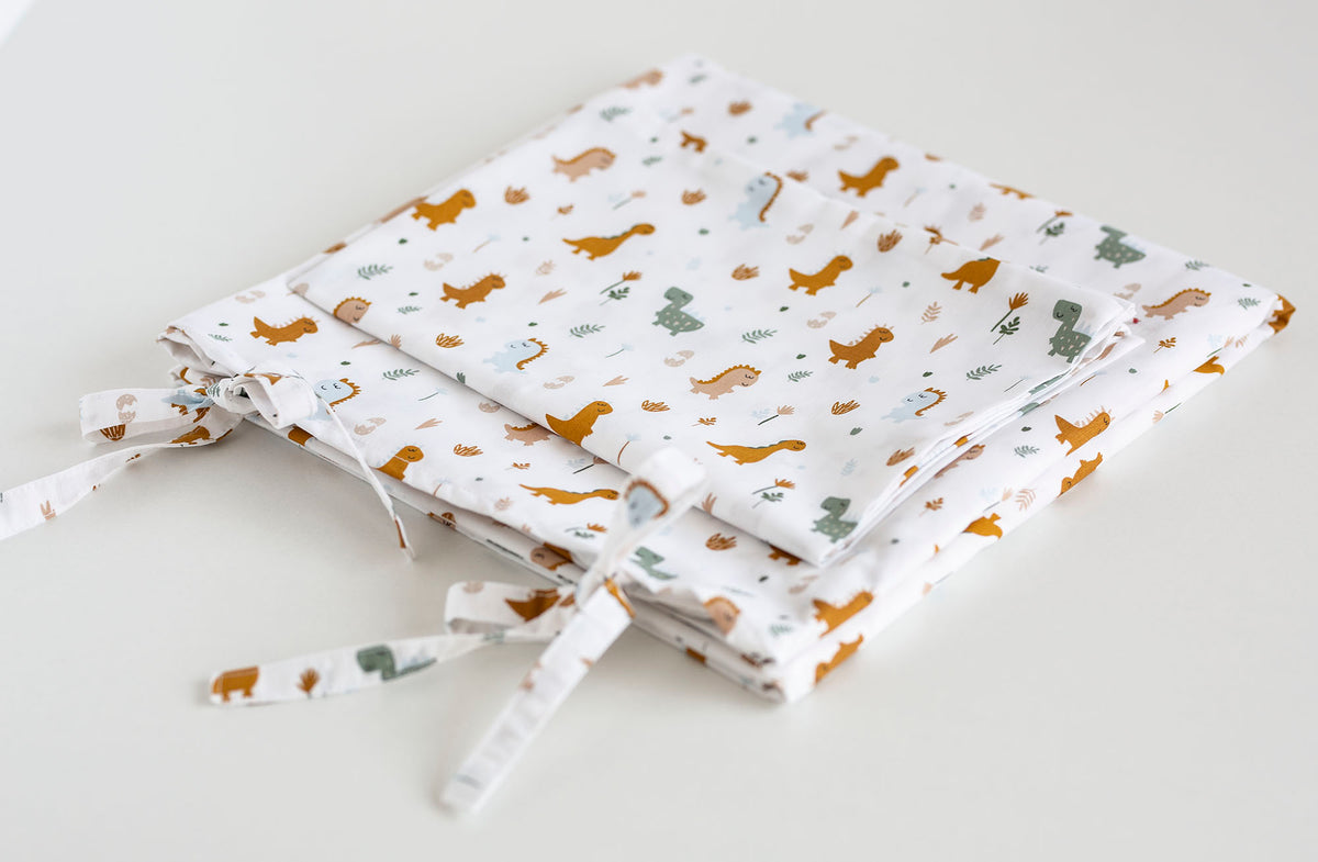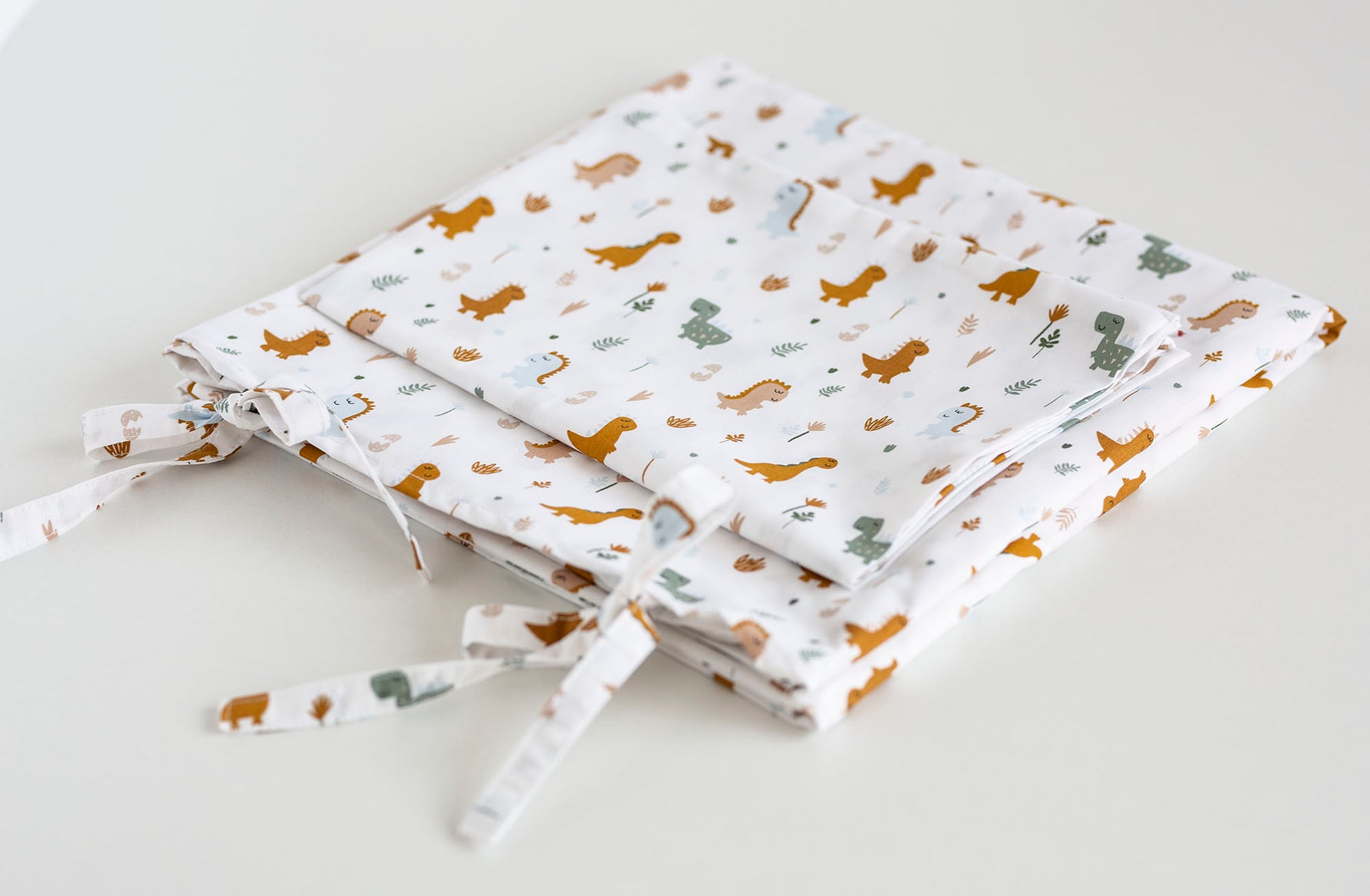 Patalynės komplektas "Dino" pasiūta iš 100% medvilnės - poplino audinio. Dinozaurų pasaulis - žavi tikriausiai visus mažus berniukus! Šioje patalynėje sapnai tikrai bus dinozauriški!  :)