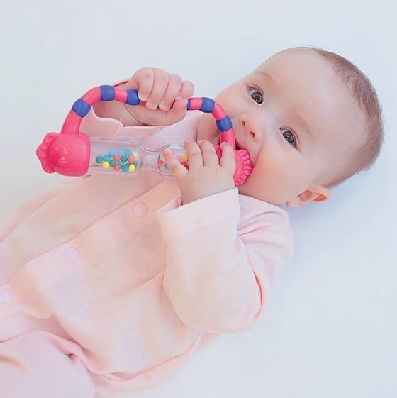 - Karoliukų judėjimas barškutyje sukuria paprastą, raminantį garsą.
