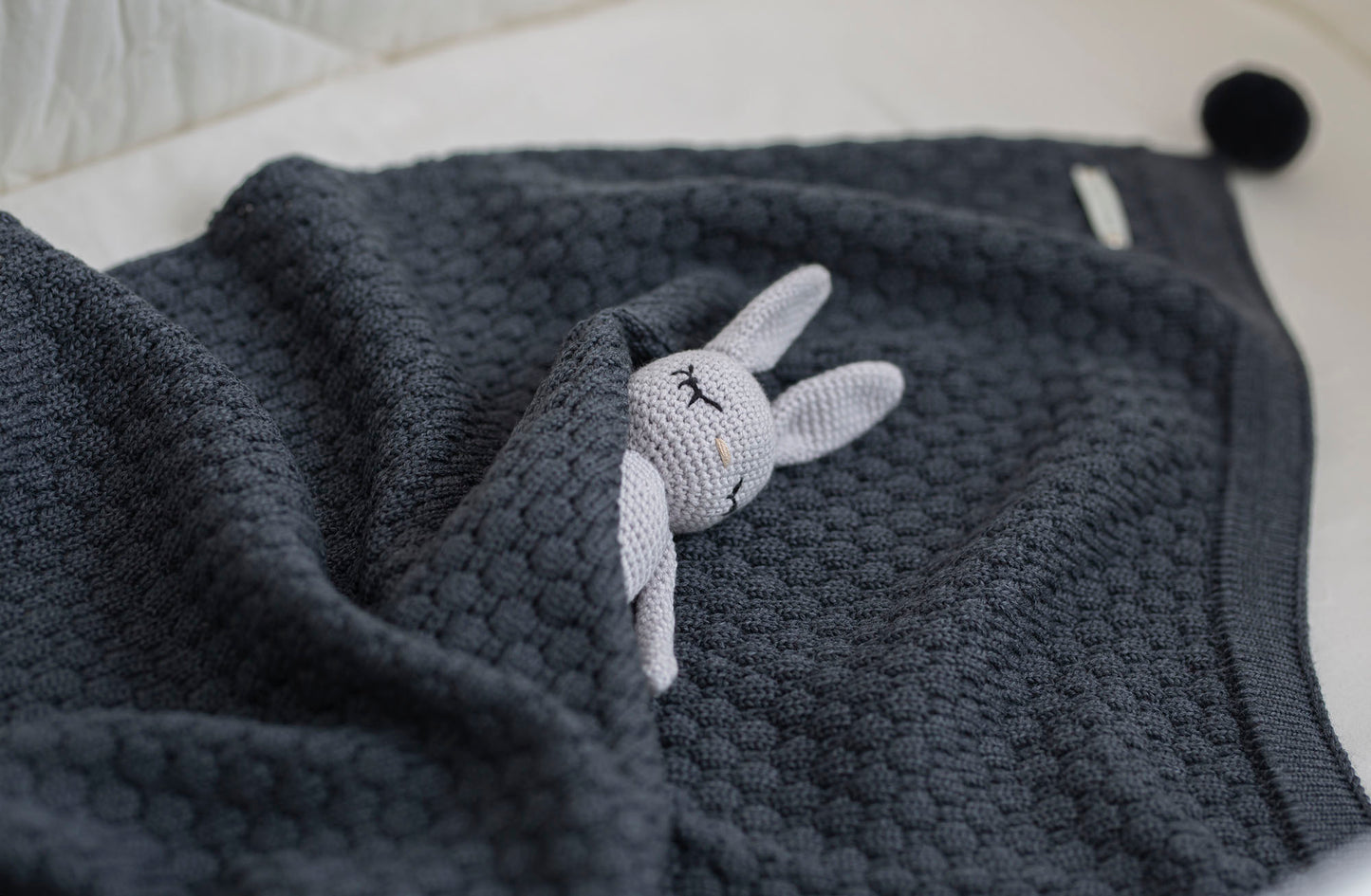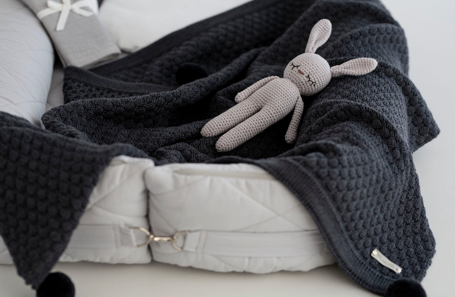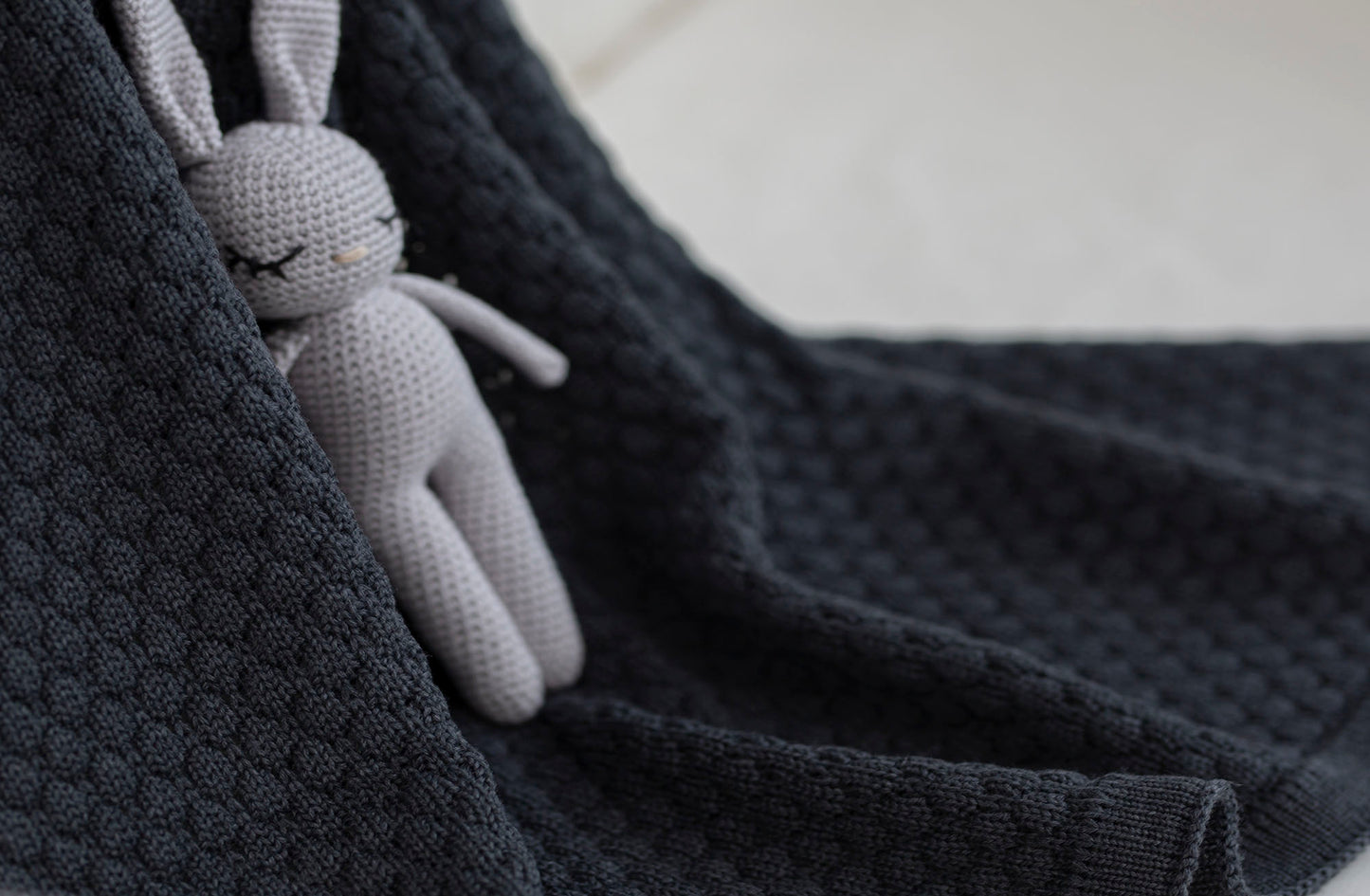 Merino vilnos pledukas kūdikiams ir vaikams "Koriukas tamsiai pilkas"