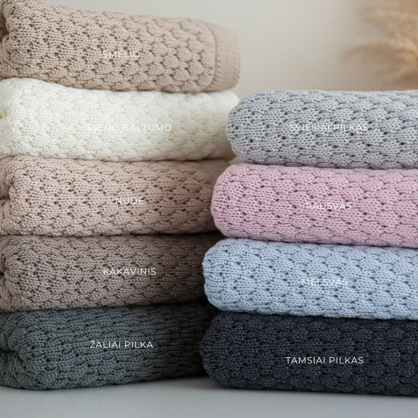 A soft, cozy, and very comfortable blanket, knitted from 100% merino wool yarn. Very versatile and suitable for use all year round.