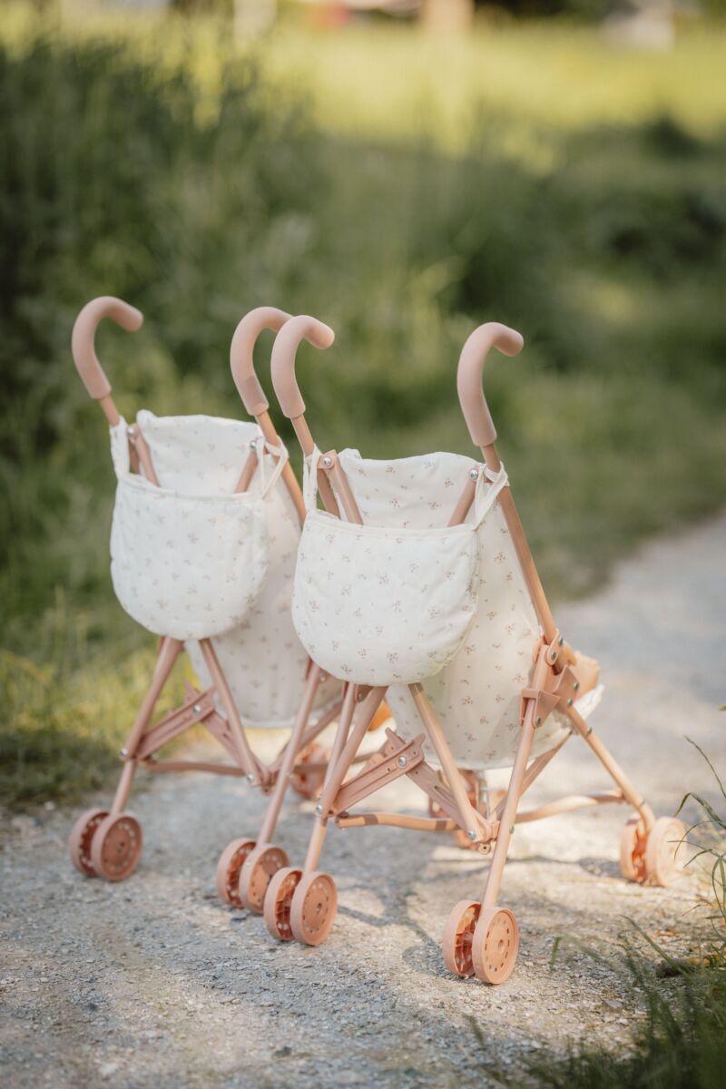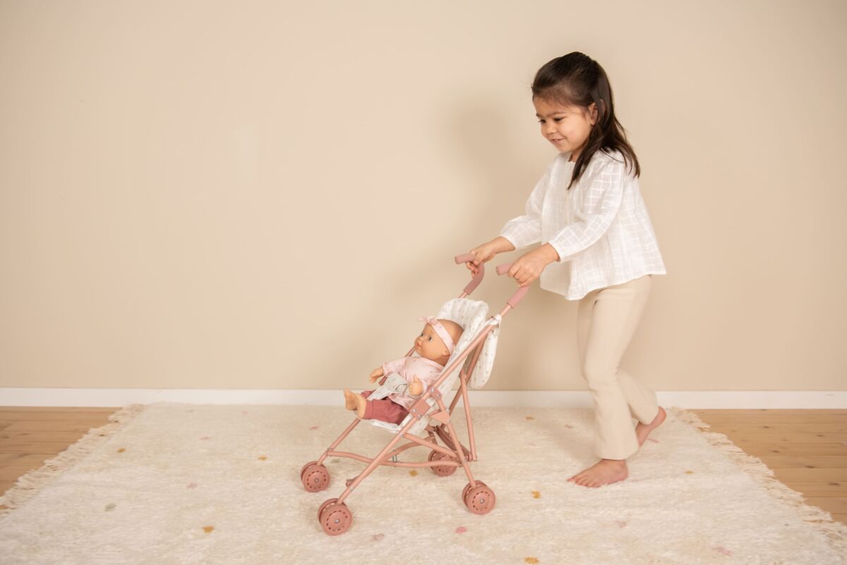 Pasodinkite savo mėgstamą lėlę ar mielą žaislą ir leiskite vežimėliui nuvesti į naują nuotykį. Sėdimoji dalis papuošta kerinčiu „White Meadows“ dizainu, o ant rankenų esančiame atitinkamame krepšyje galima laikyti lėlės aksesuarus ir pasivaikščiojimui būtiniausius daiktus. Dirželis leis lėlę vaikščioti patogiai sėdėti. Metalinis lėlės vežimėlis su rožiniu rėmeliu, rožinėmis rankenomis ir 4 rožiniais ratukais yra skirtas lavinti vaizduotės žaidimą ir ugdyti atsakomybės jausmą mažiesiems globėjams. Jį galima lengvai sulankstyti, todėl saugojimas yra patogus. Stebėkite, kaip jūsų mažylis džiaugsmingai stumdo lėlės vežimėlį, dainuodamas lopšines ir sustodamas pamaitinti ar paguosti savo apsimetantį kūdikį užkrečiančiu švelnumo ir vaizduotės jausmu, o per žaidimo magiją mokosi vertingų gyvenimo įgūdžių.