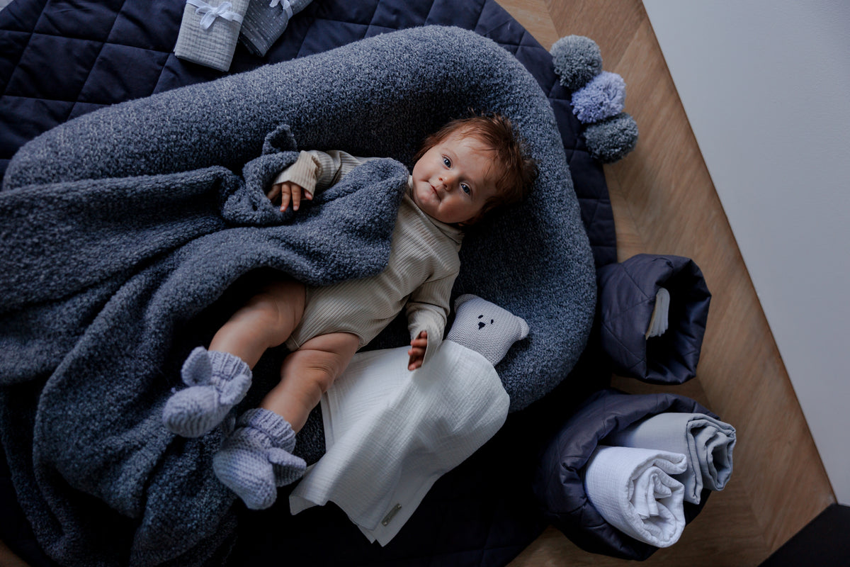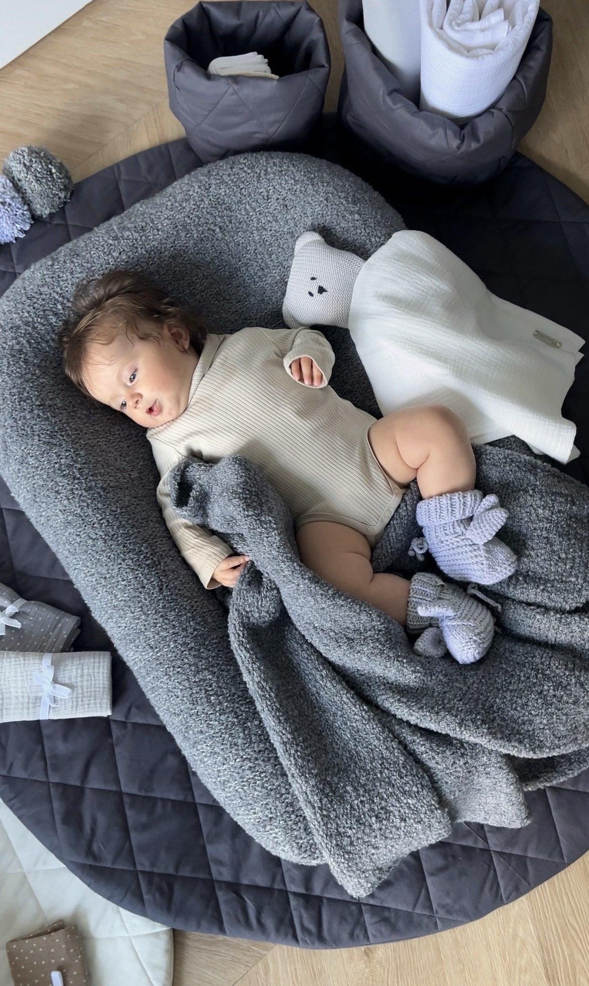 Lizdelio užvilkimas lengvai užsideda, o elastinė guma užtikrina, kad jis saugiai priglus prie lizdelio kraštų, nejudės ir išliks savo vietoje. Neutralios, švelnios spalvos ir subtilus tekstūros dizainas puikiai dera su įvairia kūdikio kambario aplinka, sukurdamas šilumos ir ramybės atmosferą.