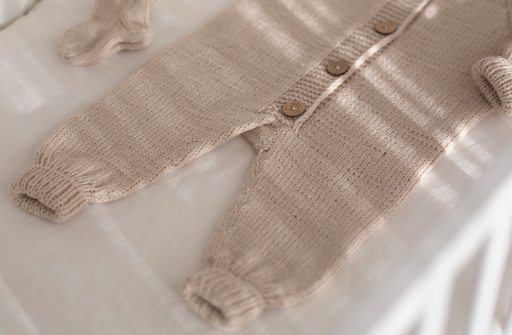 Šis rankų darbo 100% merino vilnos kombinezonas – švelnus, minkštas ir itin šiltas rūbelis, sukurtas jautriai naujagimio odelei. Tai idealus pasirinkimas pirmiesiems mėnesiams – tiek namuose, tiek pasivaikščiojimams lauke vėsesniu oru.